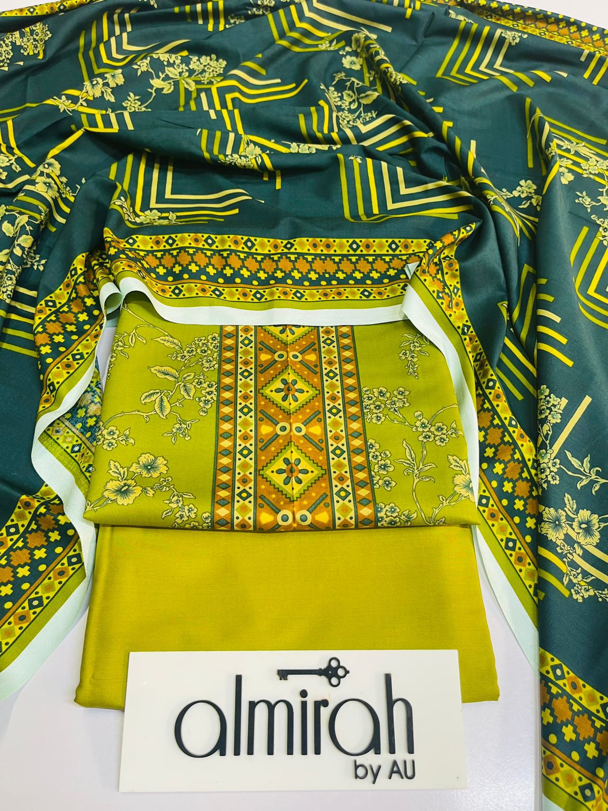 Elegant Almirah Linen Suit with printed shirt, trouser & dupatta – perfect for winter.