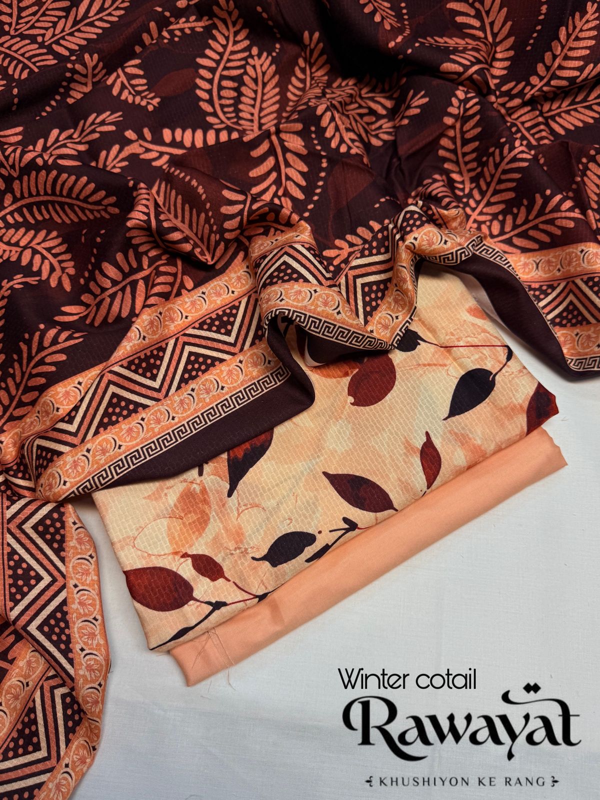 Elevate your style with the Rawayat Premium Winter Collection – premium Cotail fabric & elegant prints.